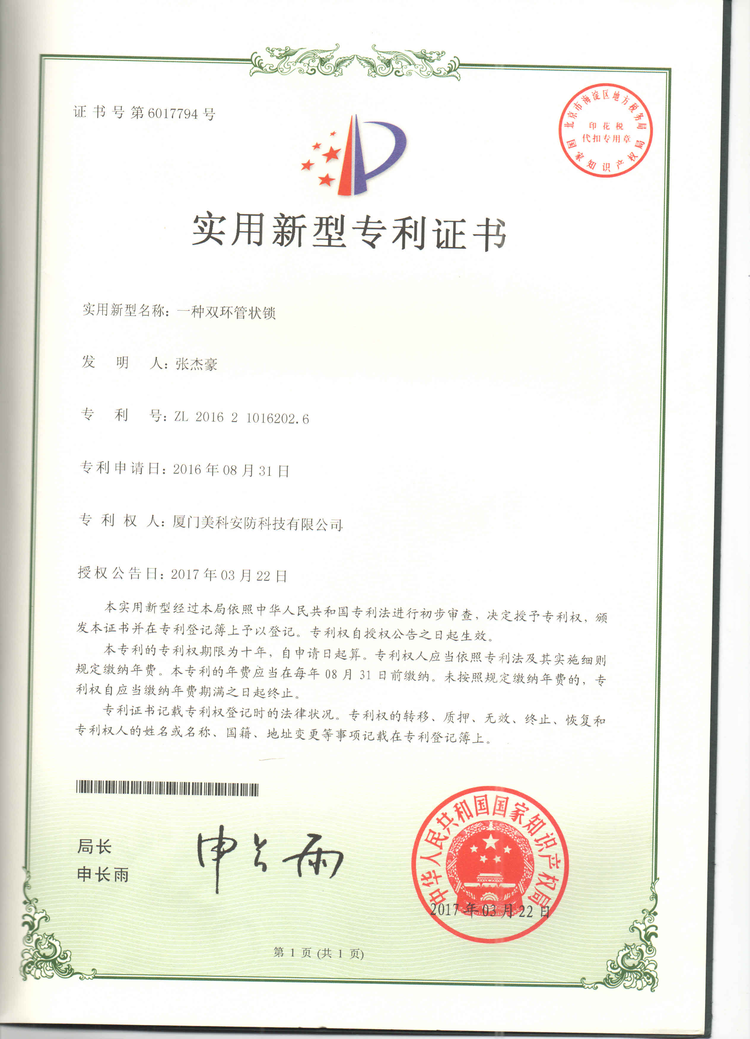1、全新雙環(huán)管狀鎖,安全性大大提高,防止技術(shù)性開鎖