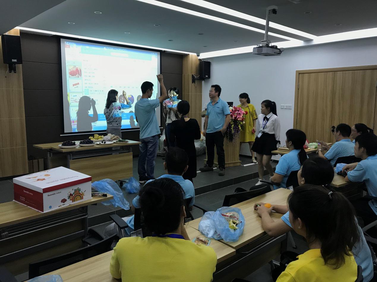 美科員工生日會,每月月底將同月生的所有員工邀約在一起,一起為壽星們慶生送祝福,現場分為三個環節“送生日祝福,互動有獎游戲,共享甜蜜時刻”。