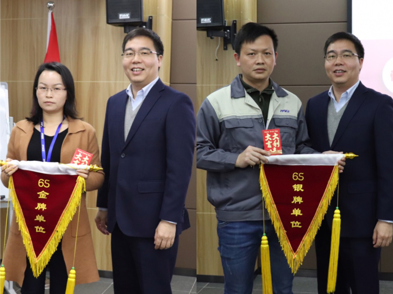 大會(huì)最后,公司對(duì)18年12月6S評(píng)比的金牌、銀牌獲獎(jiǎng)團(tuán)隊(duì)予以表彰,林總親自頒獎(jiǎng)。制造車間的C3車間獲得了6S金牌單位,A1車間過(guò)得了6S銀牌單位。辦公區(qū)域的財(cái)務(wù)中心和生產(chǎn)辦公區(qū)并列第一,分別獲得了6S金牌單位。