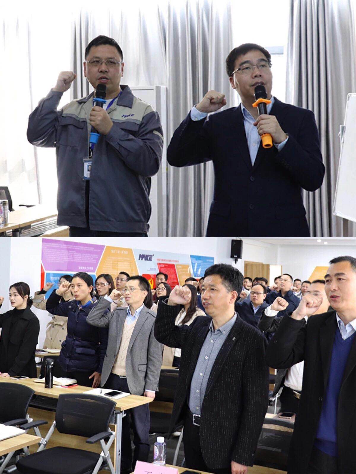 會后,公司高層管理者林輝總經理、吳院生副總、林鵬春副總,各部門主管及以上管理人員,以及顧問老師們一同進行了莊嚴誓師: