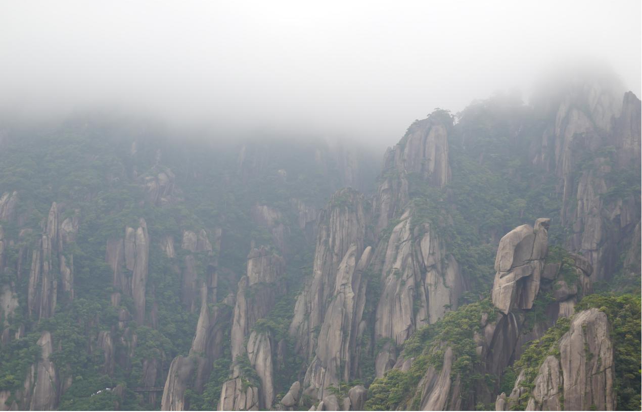 【南清園景區(qū)】:我們行走在山林之中,感受著花崗巖的溫度、草木的顏色、空氣的味道、清亮的蟲鳴。十四億年地質(zhì)演化形成的花崗巖峰林地貌特征,是三清山自然景觀的精華。