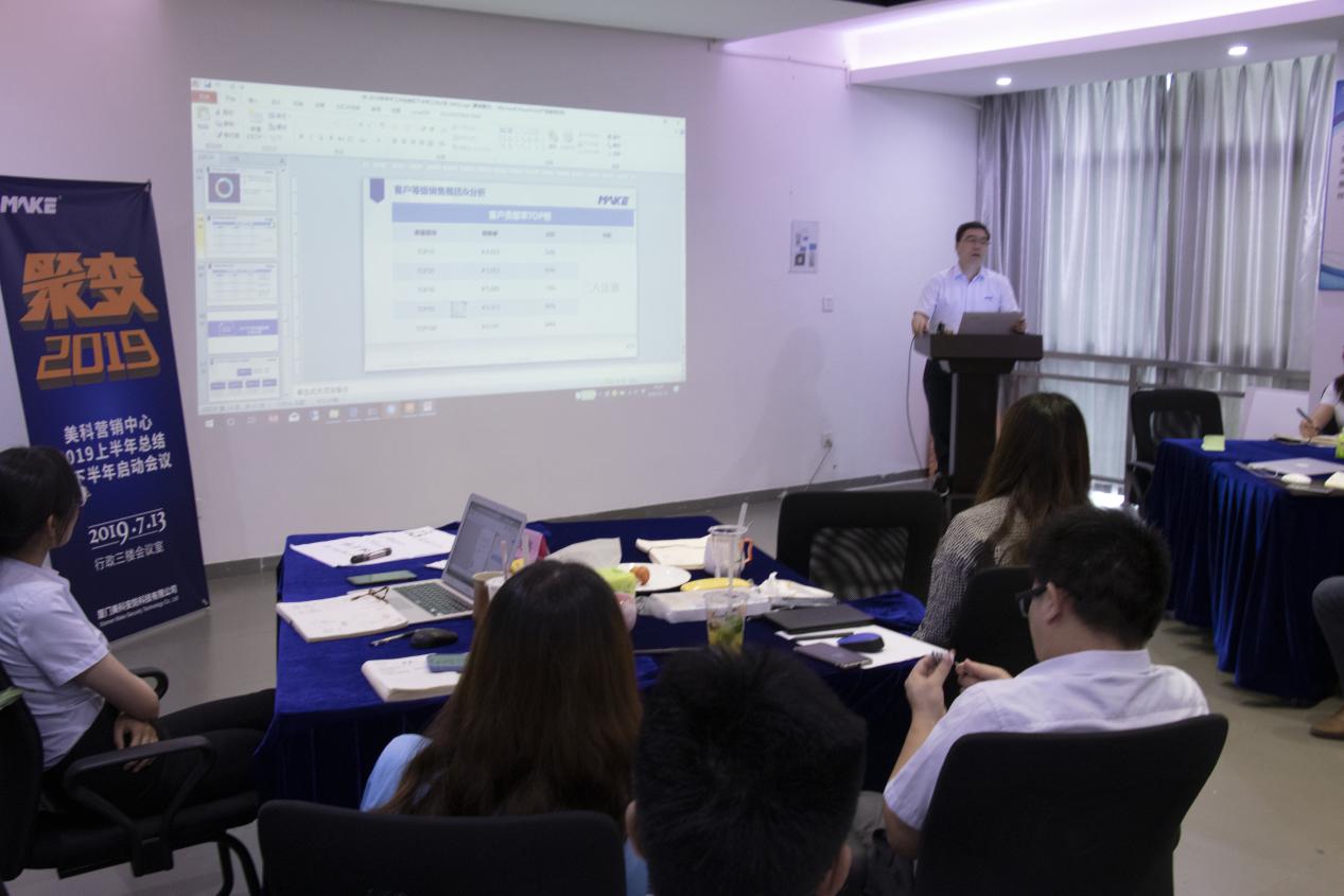 七月的鷺島,驕陽似火。旨在進(jìn)一步提升營銷團(tuán)隊(duì)凝聚力,確保全面達(dá)成年度目標(biāo)任務(wù)的營銷中心年中總結(jié)會議也進(jìn)行得如火如荼。整場會議安排有主持人、評委團(tuán)、攝影師和記錄員。美科總經(jīng)理林輝也作了重要講話。