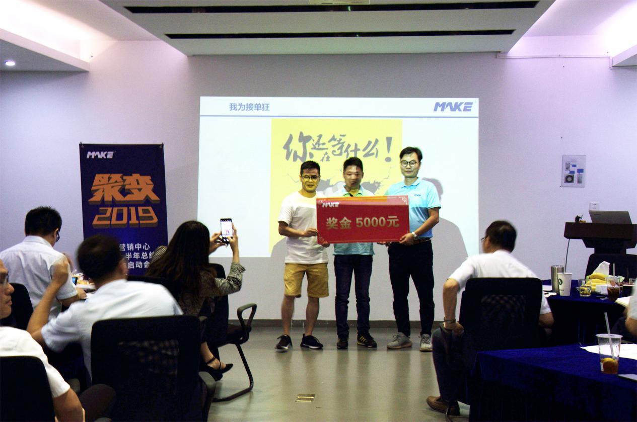 會議在亢進(jìn)有力的音樂中來到了尾聲。業(yè)務(wù)就是用數(shù)據(jù)說話。林總和謝總分別為超額完成目標(biāo)的小伙伴們頒發(fā)激勵(lì)獎(jiǎng),希望他們繼續(xù)努力,做好領(lǐng)頭羊的表率作用。