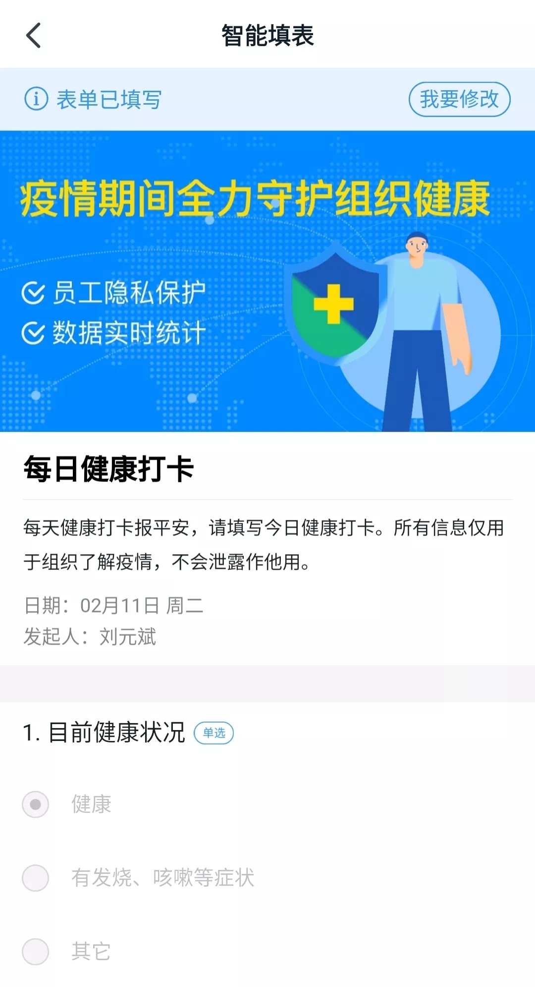 除了每天全員在線提交健康表、測體溫、掌握員工返廈前行動軌跡,美科還為返廈員工準備了專門的宿舍,并對進出做體溫檢測消毒登記。 公司行政準備各項制度規定,為開工后大家的防護用品、廠區安全、就餐、宿舍、乘坐廠車等等提前做好準備!同時,美科還充分利用公司釘釘實現了每位員工在線健康情況填報,方便復工后及時掌握員工健康實時狀況。