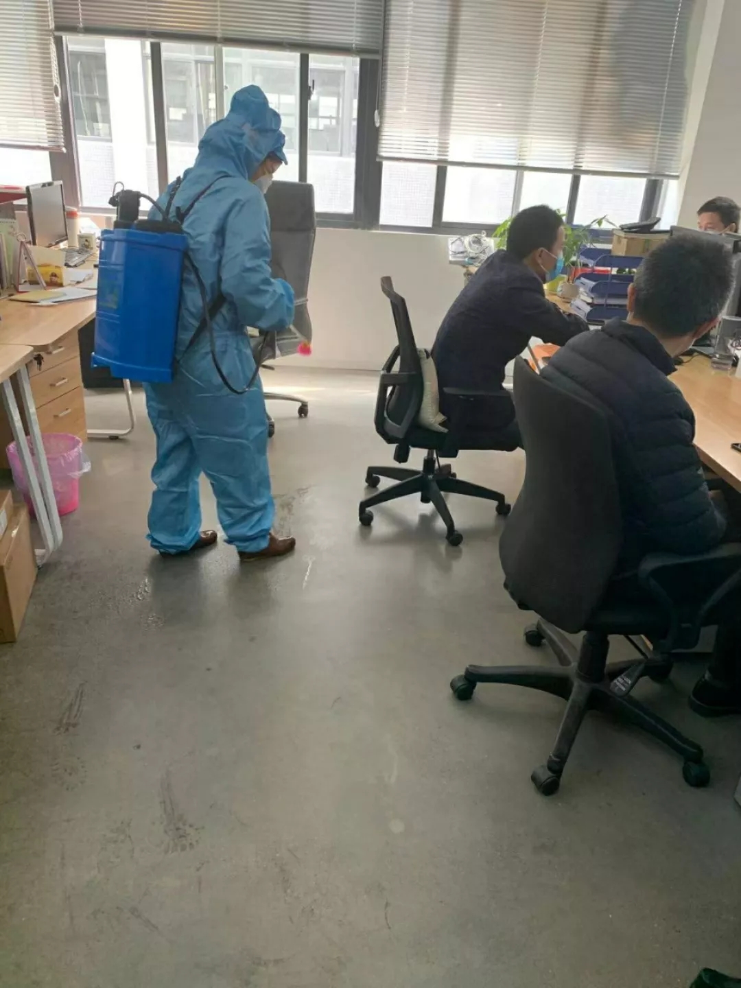 還沒開工,美科行政后勤就對辦公區域、廠部、會議室、走道、就餐區、茶水間、洗手間等公共區域嚴格實行每日兩次的消毒,確保給員工提供一個安全的工作環境。
