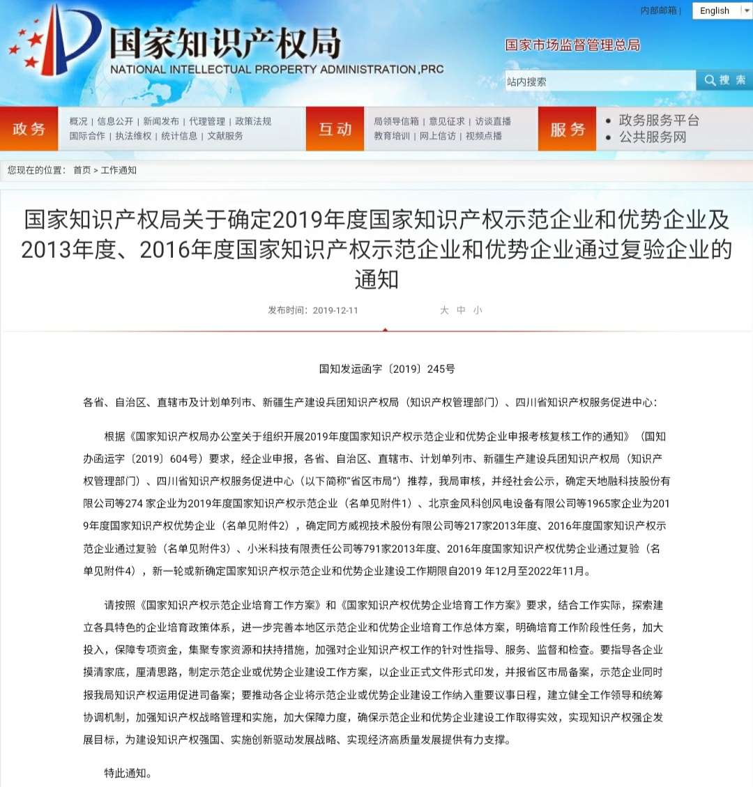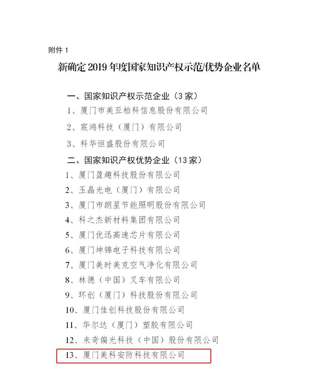 喜訊!美科成功入選2019年度國家知識產權優勢企業!