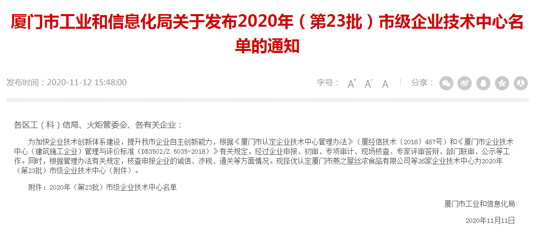 近日,廈門市工業(yè)和信息化局發(fā)布了2020年(第23批)市級企業(yè)技術(shù)中心名單,美科安防科技股份有限公司順利通過廈門市市級企業(yè)技術(shù)中心評定,榮獲“市級企業(yè)技術(shù)中心”榮譽稱號。
