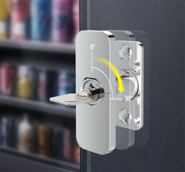 此外,美科兩款智能自助售貨機鎖還備有機械應急解鎖功能。遇到特殊情況時,工作人員可取下防塵蓋,插入應急鑰匙,順時針旋轉90°即可解鎖。